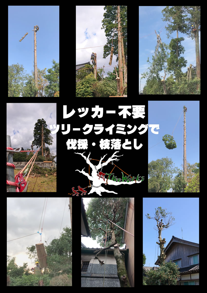 重機が入れないような伐採が困難な条件でもロープを使用して樹木伐採が可能です。